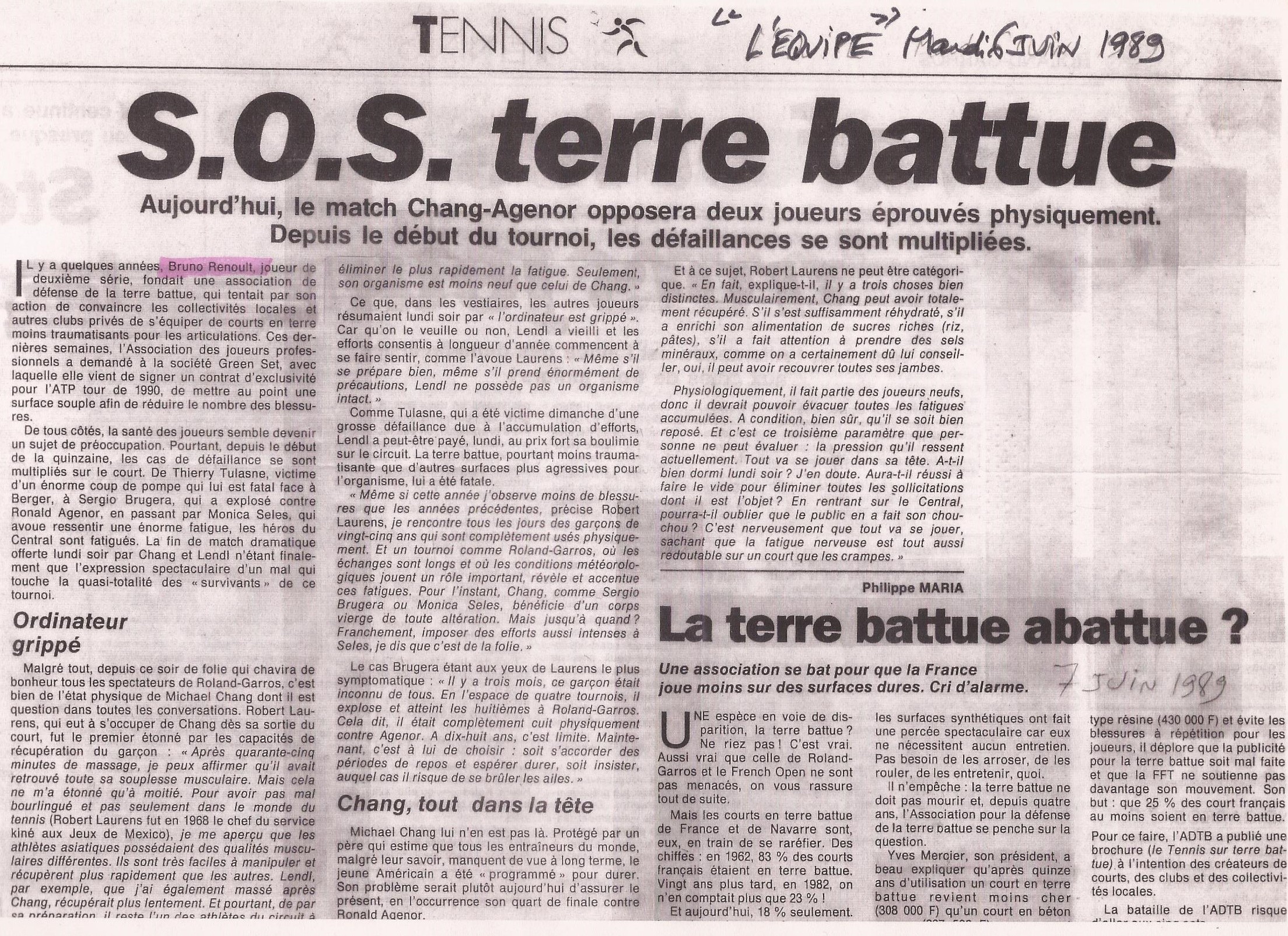 l’Equipe juin 1989 SOS terre battue